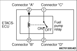 terminal No. 2 of connector "A" and the negative (-) terminal of battery to terminal