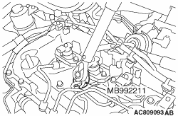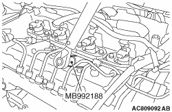 15.Using the special tool MB992188, tighten the fuel injector assembly side of the fuel injection pipe No. 3 and No. 4 to the specified torque.