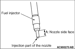 Using a resin spatula, scrape off the carbon deposit on the fuel injector nozzle side face ("A" shown in the figure).
