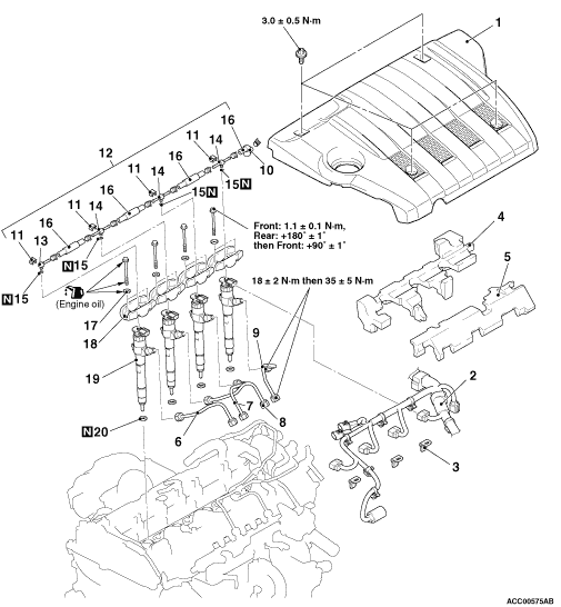 18 ± 2: Tightening torque of the fuel injection pipe (unit: N·m)