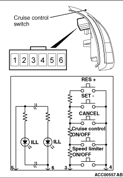 terminal is connected to cruise control switch connector terminal No.6.
