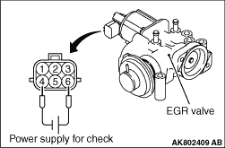power supply of the check (5 V). Connect the terminal No. 4 of the EGR valve connector with the