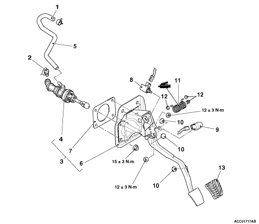 Remove the clutch master cylinder and clutch pedal assembly from inside the vehicle.