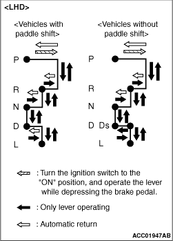 "Ds" range, or to the "L" range. Also make sure that the vehicle moves backward when the selector