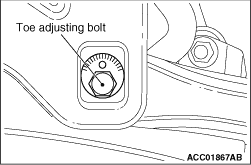 Turn the toe adjusting bolt (the mounting bolt inside the body on the control link) to