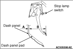 dash panel pad surface). 5.Make sure that the total of the dimensions A and B measured in Steps 3 and 4 (brake