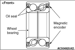 NO (Deformation) : Replace the wheel bearing <front> or rear wheel hub assembly <rear>. <Refer