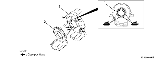 Disengage the claws of the clock spring one by one in a clockwise or anti-clockwise direction. Remove the steering wheel sensor from the clock spring.