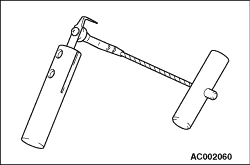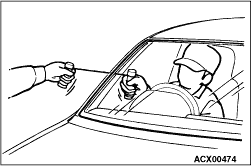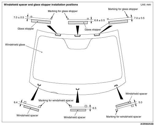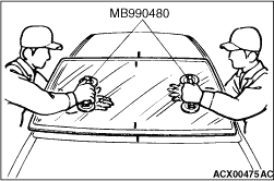 4.Make mating marks on the windshield glass and body, and use the special tool window glass holder (MB990480) to remove the windshield glass.
