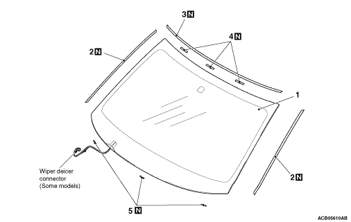7.Use spatula or the like to remove any excessive adhesive. Then clean the surface with parts cleaner (MZ100387 or equivalent). Leave the vehicle stationary until the adhesive sets (Refer to Window Glass Installation ).