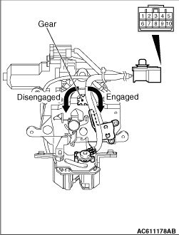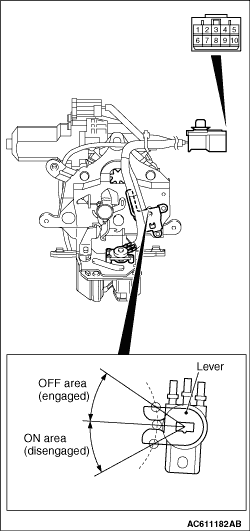 1. Connect the positive battery terminal to the tailgate latch terminal No.1, and the negative battery terminal to the tailgate latch terminal No.9 for approximately one second.