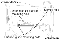 1.Align the channel guide mounting bolt on the door window glass with the adjusting hole to remove it.