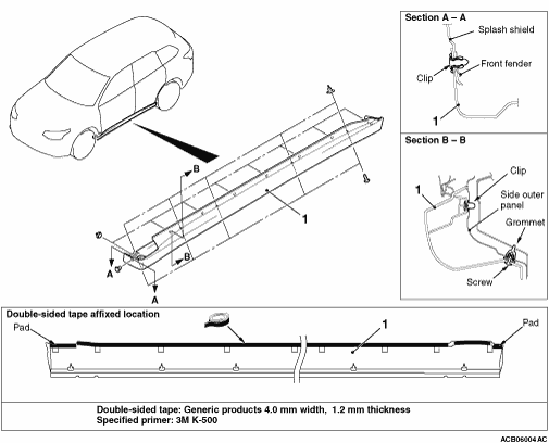 4.Adhere the double-sided tape as specified on the side air dam (Refer to double-sided tape adherence location ).