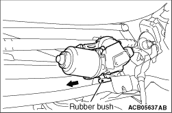 Remove the rubber bushing of the windshield wiper link assembly in the direction of the arrow from the windshield wiper bracket.