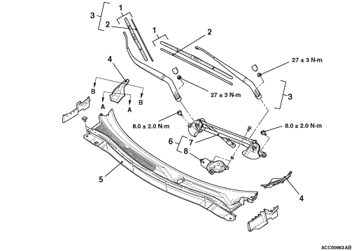 1.Confirm that the wiper motor has set to automatic stop position (Refer to ).