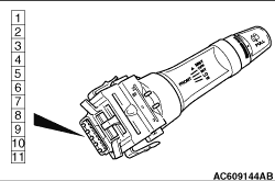 Check the windshield wiper switch (mist, intermittent, low speed and high speed) from