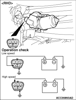 4.Connect the terminals of the windshield wiper motor connector as shown in the illustration
