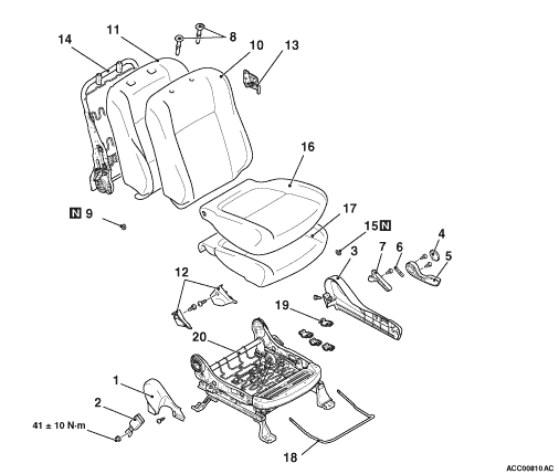 <<B>> SEAT BACK FRAME ASSEMBLY REMOVAL
