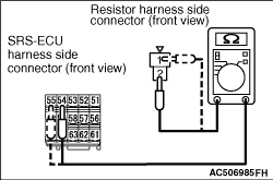 (6)Take the measurements below at the resistor harness and SRS-ECU harness side connector.