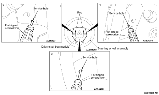 1.Insert a flat-tipped screwdriver into the service hole on the steering wheel assembly.