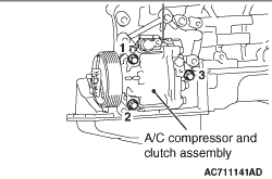 3.Tighten A/C compressor assembly mounting bolts to the specified torque in the