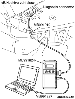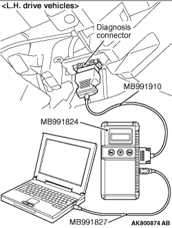 connector. 2.Turn the ignition switch to the "ON" position. 3.Select "MPI/GDI/DIESEL" from System select Screen of the M.U.T.-III. 4.Select "Special Function" from MPI/GDI/DIESEL Screen. 5.Select "Learned value reset" from Special Function Screen. 6.Select "All learned value" from Learned value reset Screen. 7.Initialise the learning value by pressing the "OK" button. 8.After initialising the learning value, the learning value of MPI engine idling is