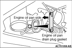 4.Install a new drain plug gasket so that it faces in the direction shown in the illustration, and then tighten the drain plug to the specified torque.