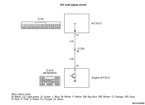 12) A/C-ECU connector and D-216 (terminal No. 78) engine-A/T-ECU connector.