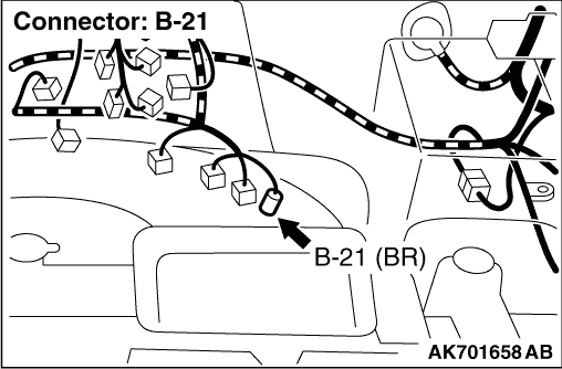 Check and repair harness between B-21 (terminal No.