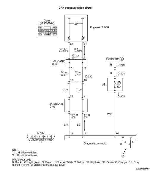 harness between D-127 (terminal No. 16) diagnosis connector and battery.
