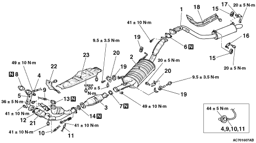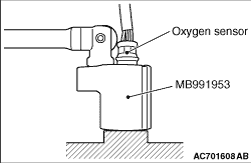 1.Tighten the oxygen sensor to the specified torque by using special tool oxygen sensor wrench (MB991953).