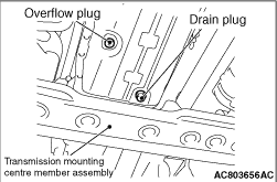 caution When draining the fluid from the drain plug hole, use a plate to prevent the fluid from dripping on the centre member assembly.