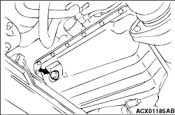 13.When A/T fluid is under the specified level, top up A/T fluid. When A/T fluid is over the specified level, drain the excessive A/T fluid from the drain plug to adjust A/T fluid level to the specified level.