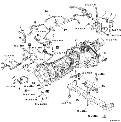 >>A<< TRANSMISSION UPPER CONNECTING BOLTS/TRANSMISSION LOWER CONNECTING BOLTS INSTALLATION