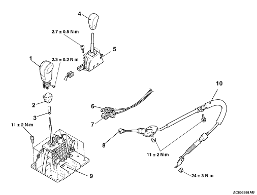 >>A<< KEY INTERLOCK CABLE (SELECTOR LEVER ASSEMBLY SIDE) INSTALLATION