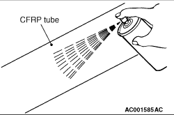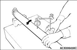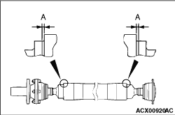3.Measure the clearance (A) between the tube and the shaft at the end portion of the tube. Standard value (A): 1 - 1.3 mm 4.If the standard value is not met, replace the rear propeller shaft.