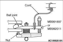 1.Install special tool ball joint remover (MB991897 or MB992011) as shown in the figure.