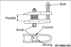 2.Turn the bolt and knob as necessary to make the jaws of special tool parallel, tighten the bolt by hand and confirm that the jaws are still parallel.