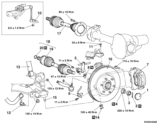 • Do not remove the nut from the ball joint. Loosen it and use the special tool to avoid possible damage to ball joint threads.