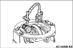 2.When runout exceeds the limit value, check for foreign material between drive gear rear side and differential case, or for loose drive gear installation bolts.