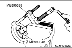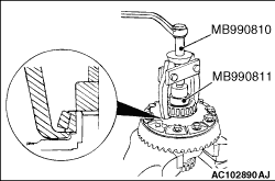 2.Pull out the drive pinion together with special tool side bearing puller(MB990810).