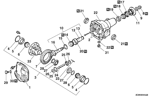 4.If adjustment is impossible, replace the differential case, or replace the drive gear and pinion as a set.