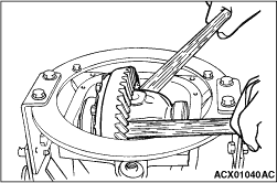 caution When taking out the differential case assembly, be careful not to drop and damage the differential side bearing spacers and differential side bearing outer races.