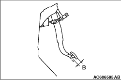 2.Start the engine, depress the brake pedal with approximately 490 N of force, and measure the clearance between the brake pedal and the floorboard.
