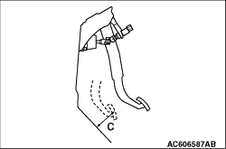 2.Operate the pedal by hand, and check that the pedal stroke (free play) meets the standard value at the point where resistance is felt.