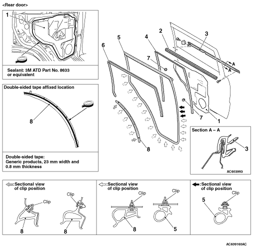 Door grip upper retainer (Refer to GROUP 52A - Door Trim .)