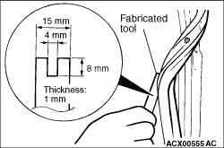 Make the tool as shown in the figure, and remove the weatherstrip from the door panel.