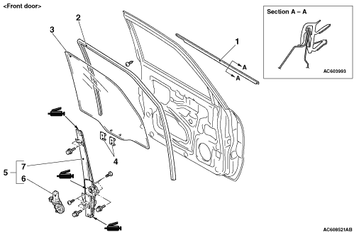 caution If any film or the like is applied to the door window glass, use the special tool window glass holder (MB990480) at the outside of the door glass to prevent the film from peeling off.