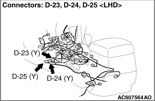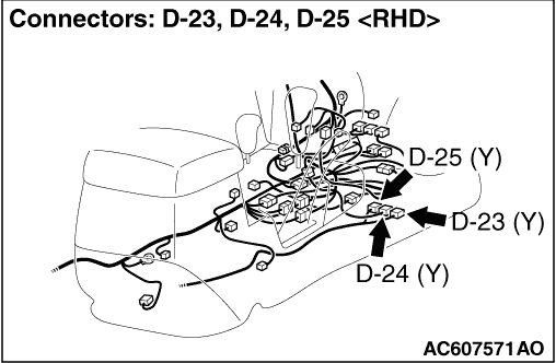 STEP 3. Connector check: SRS-ECU connector D-23, D-24 and D-25.