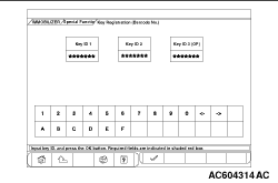 • "Key Registration (Barcode No.)": When the ignition key is replaced by the full service key set or the handle lock service key set is replaced.